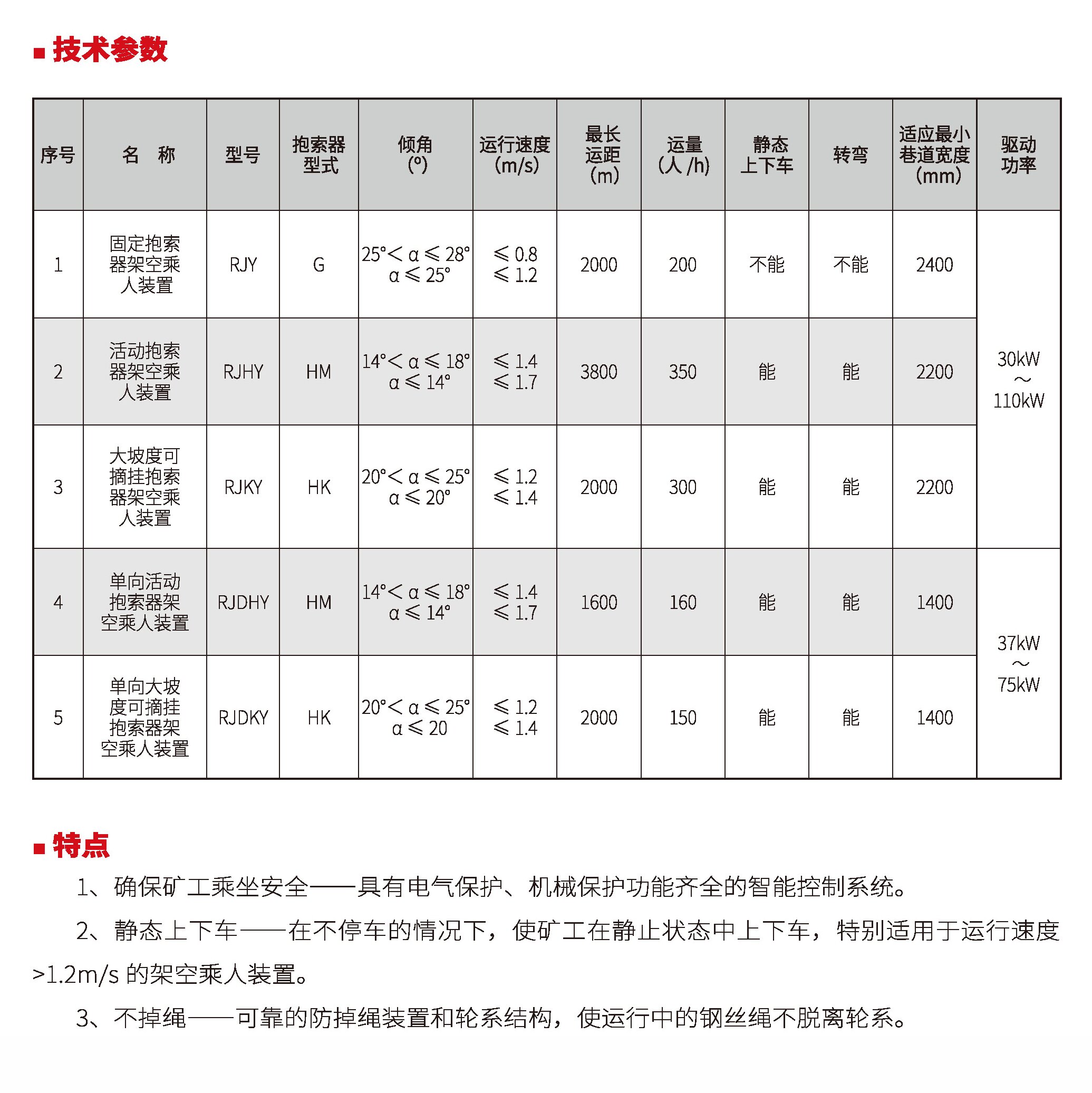 煤礦井下架空乘人裝置安標型號一覽表